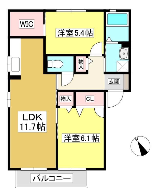 ![]() ポイントウォークインクローゼット付きのファミリーにおすすめな2LDKです 【間取】
