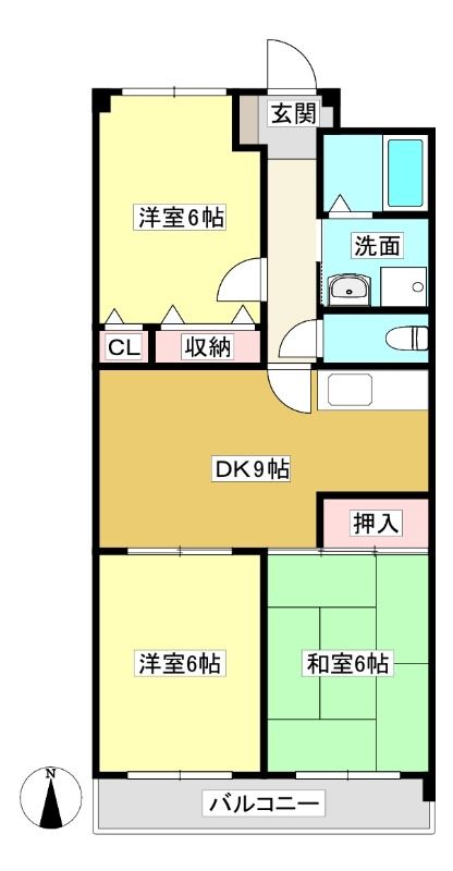 ![]() ポイントペット相談可エレベーター付きの3DKマンションです。 【間取】