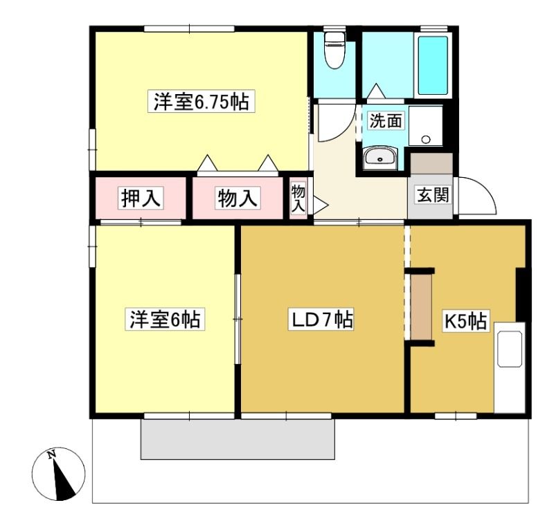![]() ポイント追い焚き、洗髪洗面化粧台設備の2LDK。1階の角部屋で小さなお子さんのいるファミリーにおすすめ。 【間取】