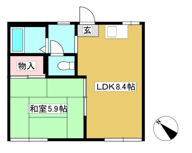 ![]() ポイントワンルームより広めのお部屋をお探しの単身者の方におすすめの1LDK。バス・トイレ別のセパレートタイプ 【間取】