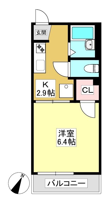 ![]() ポイント徒歩4分圏内にスーパー、ドラッグストア、コンビニがあり買い物便利な単身者向けのお部屋 【間取】