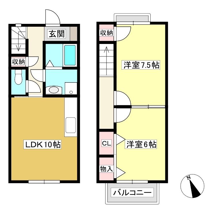 ![]() ポイント追い焚き、洗髪洗面化粧台、エアコン設備のメゾネットタイプの2LDK。カップル・新婚さんにおすすめのお部屋です 【間取】