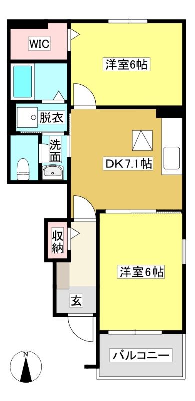 | 築年月 | 2012年3月 | 間取り | 2DK( DK7.1畳/洋室6畳/洋室6畳 ) | 専有面積 | 45.34m2 |