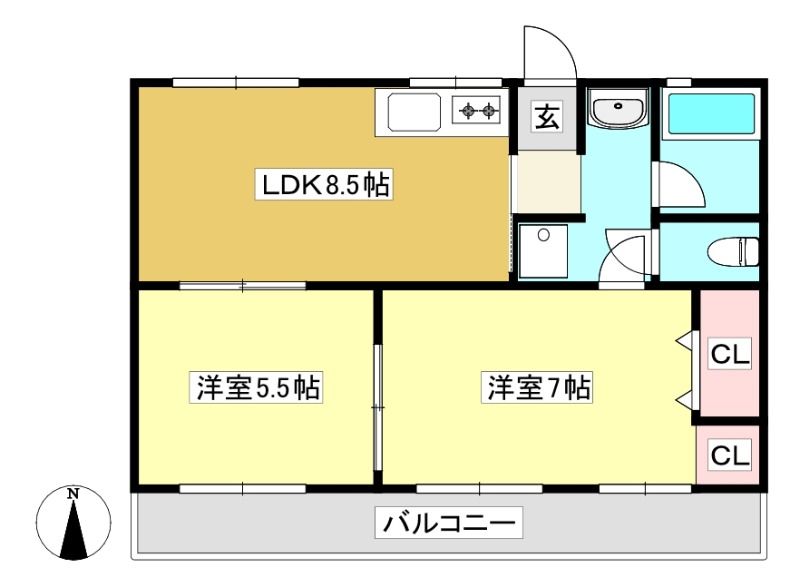 ![]() ポイントスーパーまで徒歩6分、買い物便利な2LDKのお部屋です 【間取】