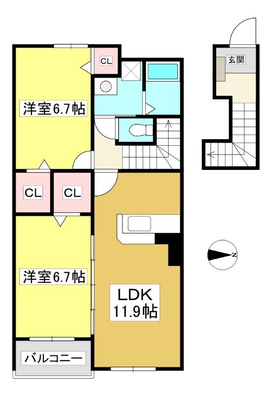 クレールメゾンI 幸田の2LDK賃貸アパート