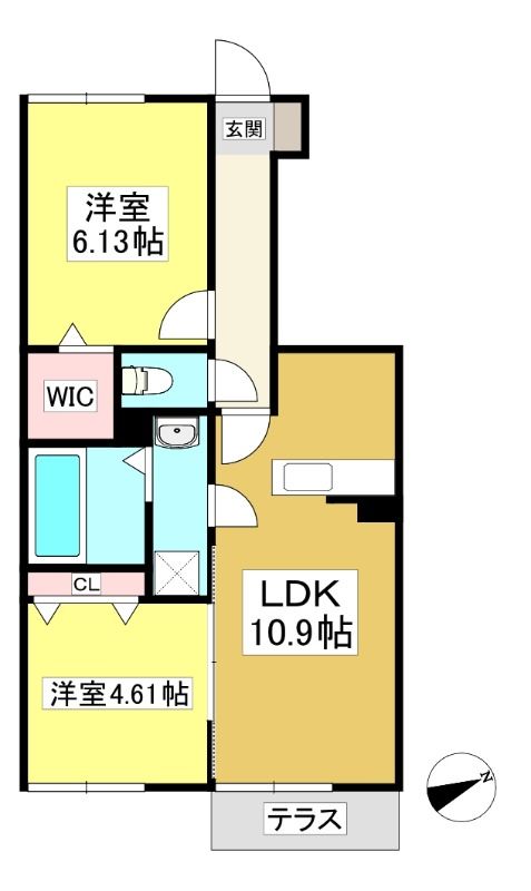 ![]() ポイントエアコン、洗浄便座、モニターホン、追い焚き、照明、システムキッチン付き、充実設備の2LDKのお部屋です 【間取】