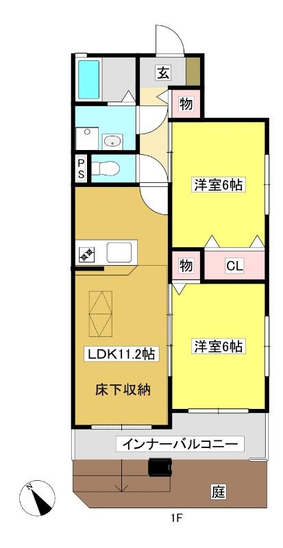 | 種別 / 構造 | アパート / 木造 | 主要採光面 | 南西 | 所在階 / 階数 | 1階 / 2階 |