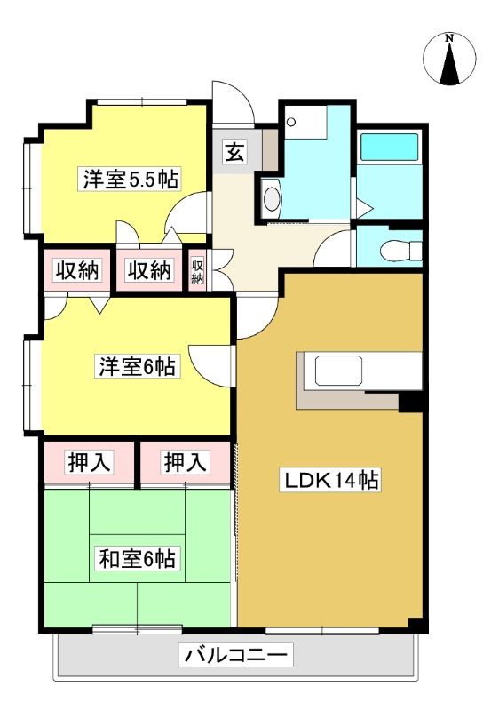 | 築年月 | 2000年3月 | 間取り | 3LDK( LDK14畳/和室6畳/洋室6畳/洋室5.5畳 ) | 専有面積 | 71.85m2 |