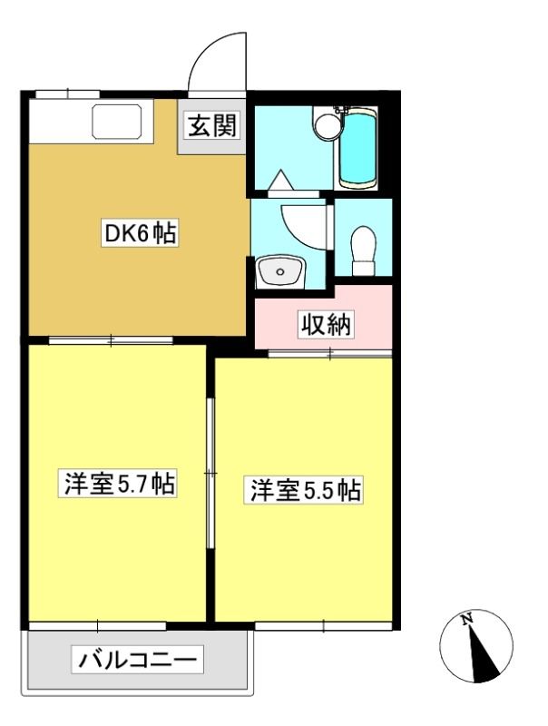 | 築年月 | 1991年4月 | 間取り | 2DK( DK6畳/洋室5.7畳/洋室5.5畳 ) | 専有面積 | 35.3m2 |