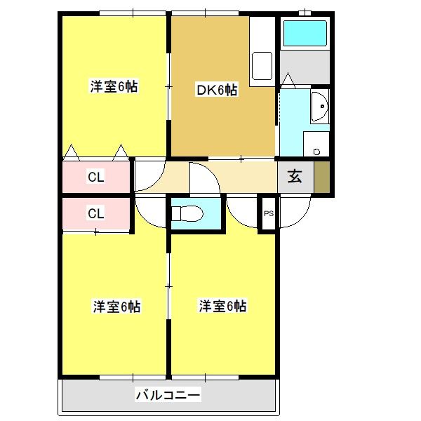 ![]() ポイント部屋数多く、ファミリーにおすすめの3DK、ペット飼育相談可です 【間取】