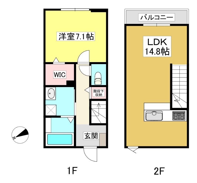![]() ポイント無料インターネット付き築4年の設備が充実したメゾネットタイプの1LDKです。 【間取】
