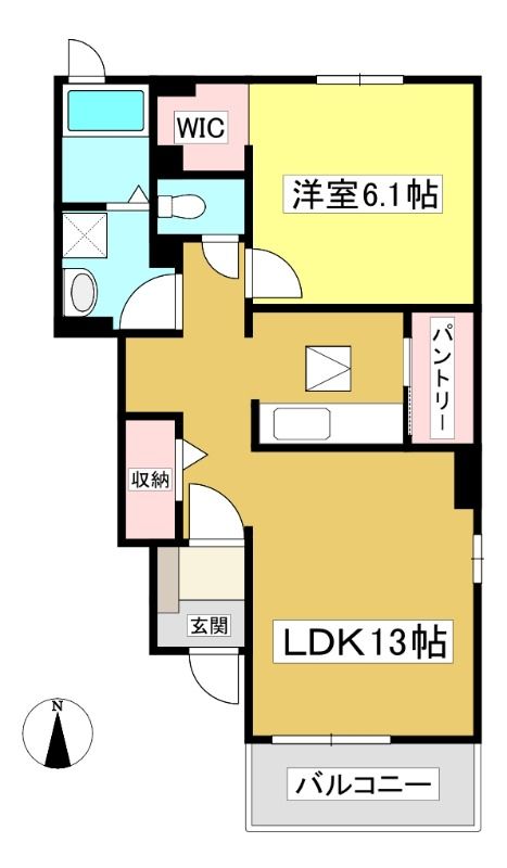 ![]() ポイントエアコン2基付き対面キッチンや収納力が魅力的な1LDKです。 【間取】