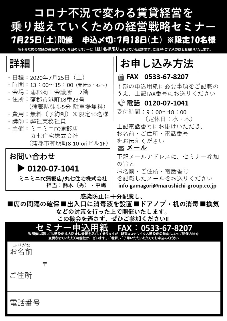 「コロナ不況で変わる賃貸経営を乗り越えていくための経営戦略セミナー」 開催のお知らせ