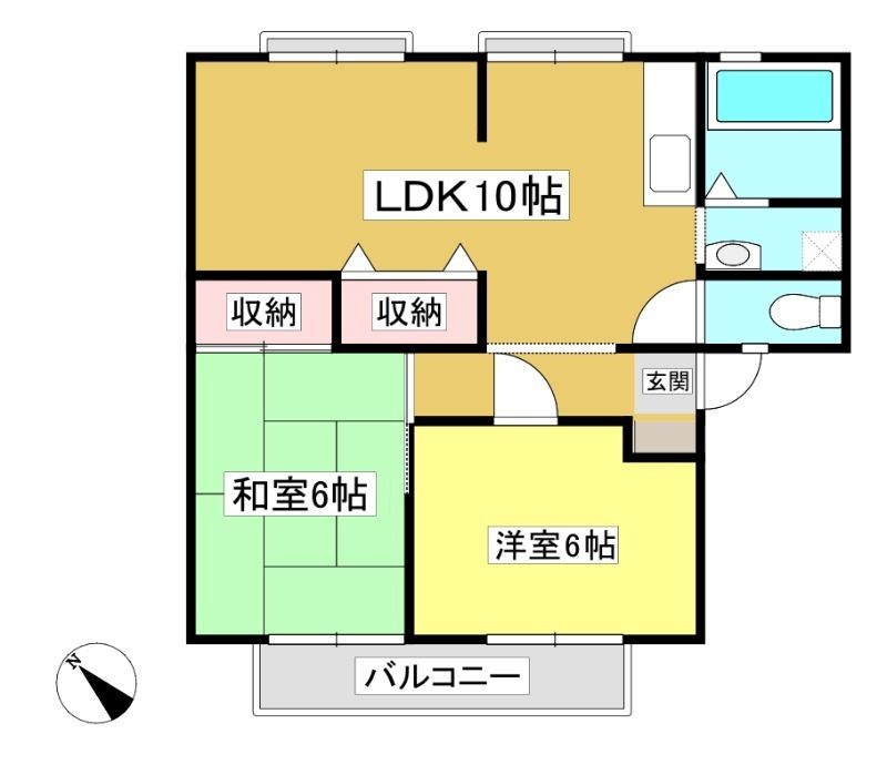 ![]() ポイントエアコン、追焚付きで高速アクセスのいい2LDKです。静かな環境で暮らしたい方必見のお部屋です 【間取】
