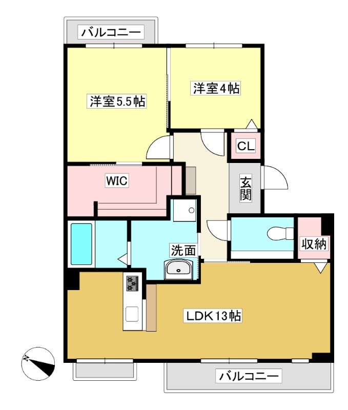 ![]() ポイント13帖の広めのLDKでゆったり過ごせる2LDKのお部屋です 【間取】