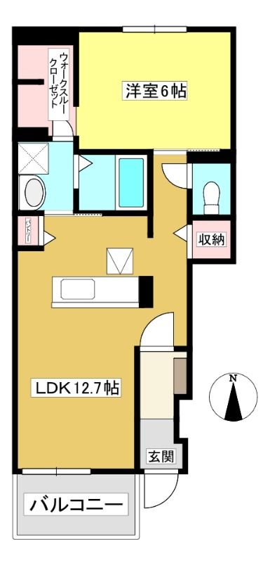 ![]() ポイントウォークスルークローゼットがあるので生活動線の良い1LDKアパートです 【間取】