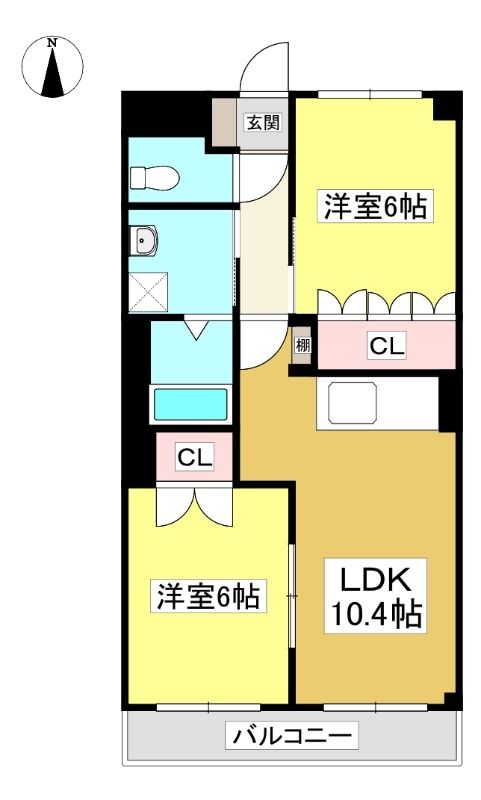 | 築年月 | 2013年1月 | 間取り | 2LDK( 洋室5.7畳/洋室6畳/LDK10.4畳 ) | 専有面積 | 49.5m2 |