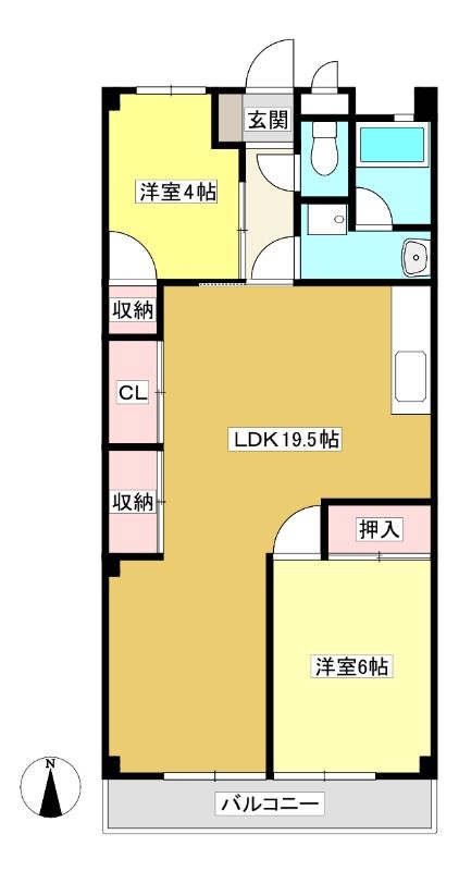 ![]() ポイントエアコン、照明、TVドアホンの設備付き2LDKマンション物件 【間取】
