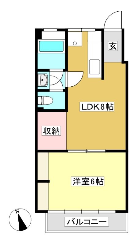 ![]() ポイントキッチンに窓があり扉を開けば通風良好、南向きで陽当たりのよい物件です。 【間取】