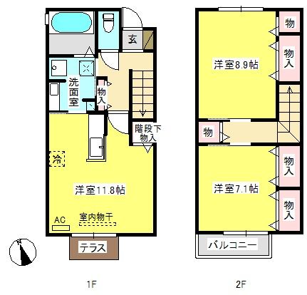 ![]() ポイントペット相談可(小型犬又は猫1匹まで)のファミリーにおすすめの2LDKです 【間取】