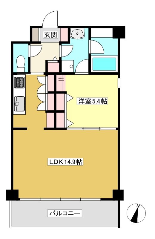 築年月 新築  間取り 1LDK( LDK14.9畳/洋室5.4畳 ) 専有面積 44.88m2