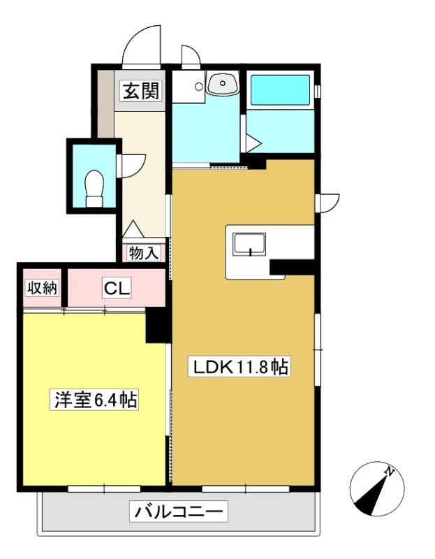 ![]() ポイント寝室スペースとリビングを分けて使うことのできる1LDK。 【間取】