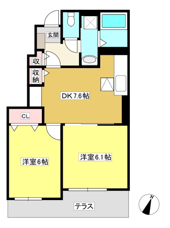 | 築年月 | 2014年3月 | 間取り | 2DK( DK7.6畳/洋室6.1畳/洋室6畳 ) | 専有面積 | 45.89m2 |