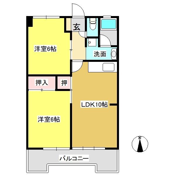 築年月 1981年6月  間取り 2LDK( 洋室6畳/洋室6畳/LDK10畳 ) 専有面積 47.56m2