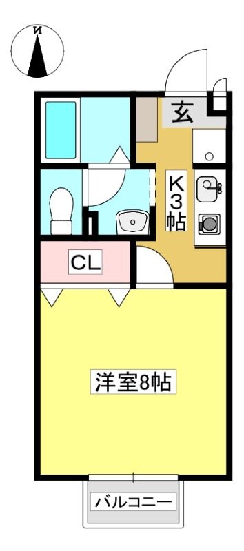 ![]() ポイントバス・トイレ別の単身者向け1Kです 【間取】