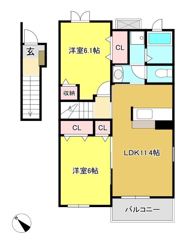 ![]() ポイント浴室乾燥機付きなので時間や天候に左右されずに洗濯物が乾かせます 【間取】
