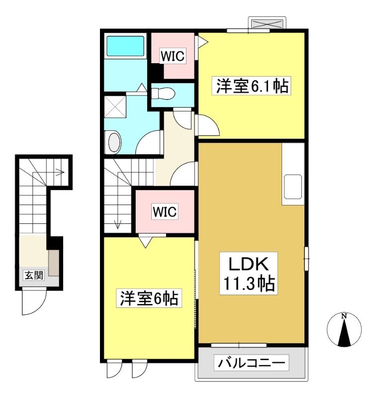 ![]() ポイント2ヵ所ウォークインクローゼットがあるので収納に便利 【間取】