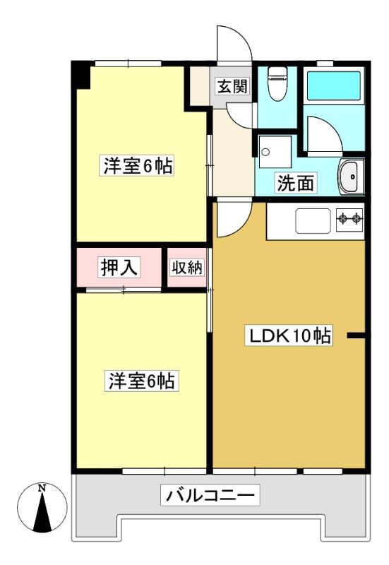築年月 1981年6月  間取り 2LDK( 洋室6畳/洋室6畳/LDK10畳 ) 専有面積 47.56m2