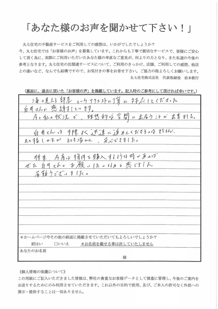 将来、今度は物件を購入するような時があればぜひ白井さんにお願いしたいなぁと感じました。