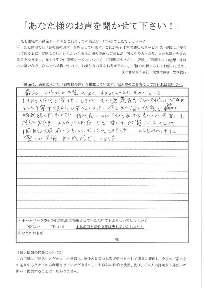 桑鶴さんに対応して頂きとても丁寧な説明で安心しました。 三谷町 1LDK